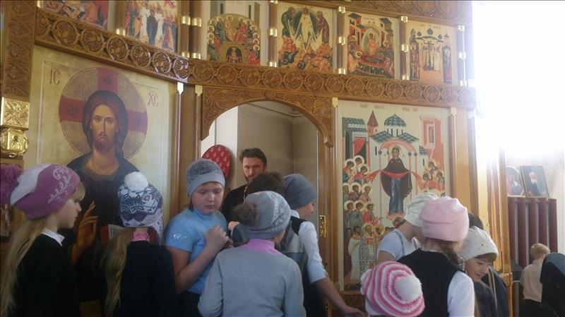В 4 классе проходил урок по теме "Храм". Ребята познакомились с устройством храма, как внешнем, так и внутренним. После этого урока у ребят появилось желание побывать в православном храме, подробнее узнать о его назначении и роли в возрождении духовных традиций русского народа. Вместе с ребятами мы посетили храм Пресвятой Богородицы, который находится в нашем поселке. Экскурсию для нас провел настоятель храма Тукуреев Н.К.