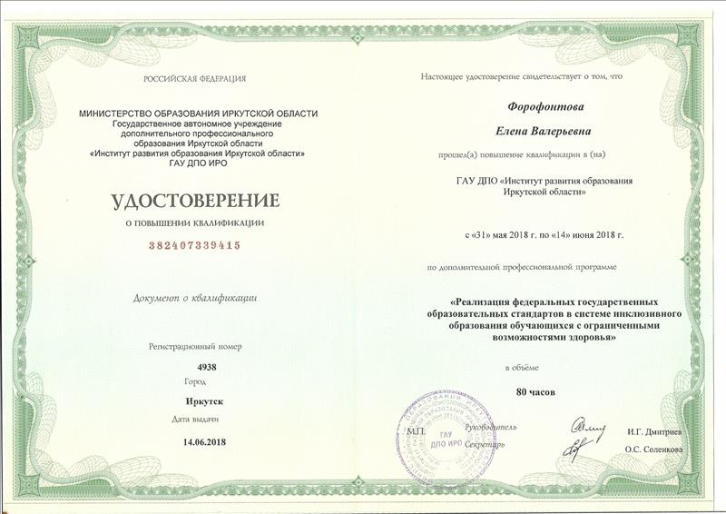 | ГАУ «Институт развития образования Иркутской области | Реализация федеральных государственных образовательных стандартов в системе инклюзивного образования обучающихся с ограниченными возможностями здоровья